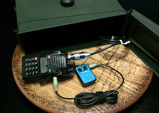I then setup the Wouxun to accept VOX input. Using a 3.5mm to 3.5mm plug cable, I plugged one end into the MP3 player and the other into the Wouxun microphone input jack. Set the VOX level to 3. Turned on the radio. Turned on the MP3 in "repeat a single track" mode. Now, every 3 minutes the radio announces its call sign and a little more.
